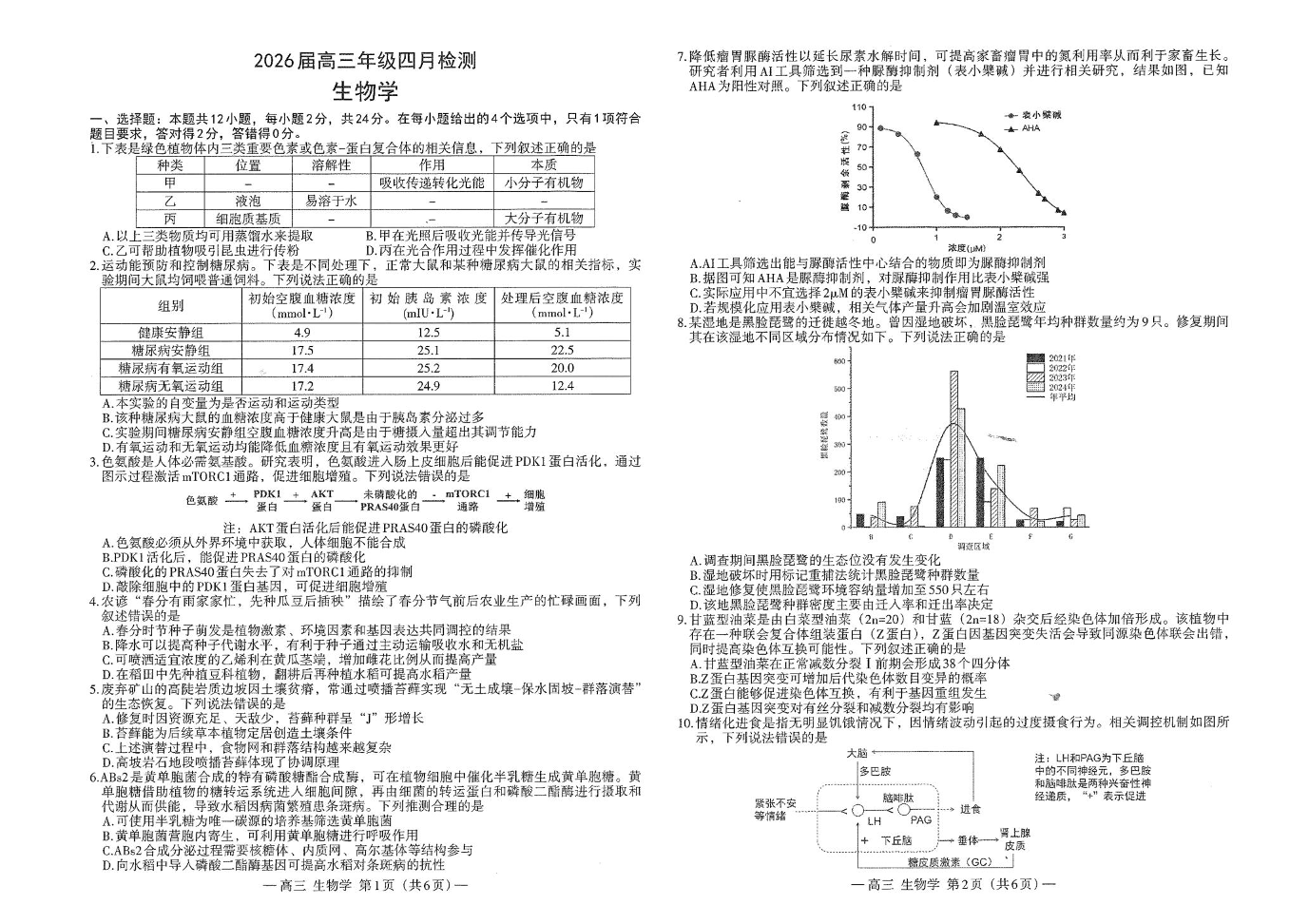高三生物--江西省南昌市2026届高三下学期四月检测(南昌二模)