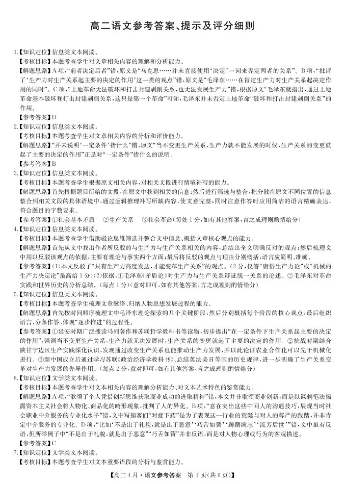 高二语文答案--安徽省县中联盟2025-2026学年高二年级下学期4月联考