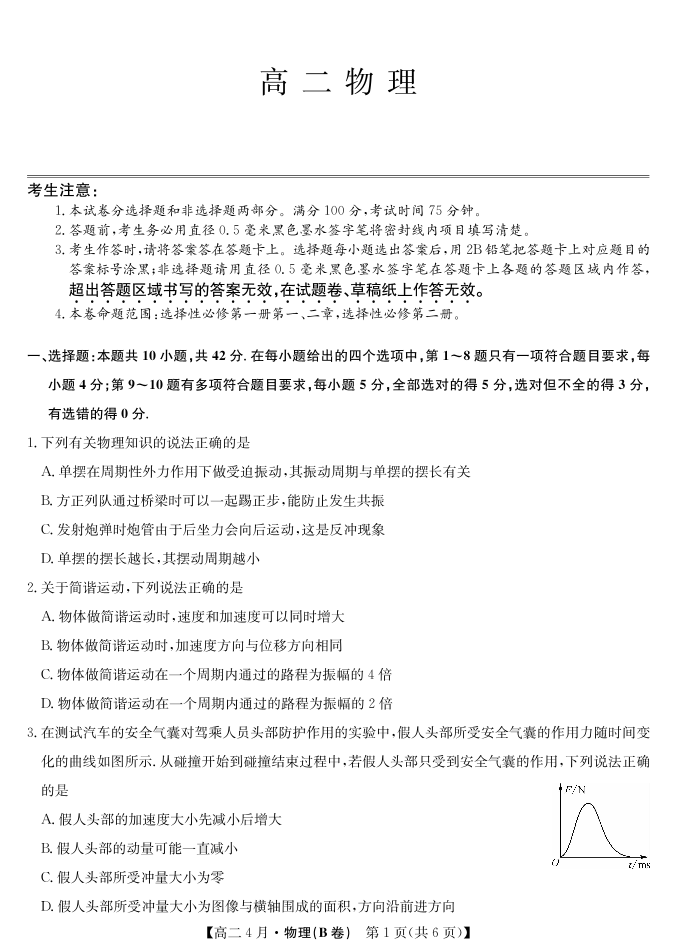 高二物理B--安徽省县中联盟2025-2026学年高二年级下学期4月联考