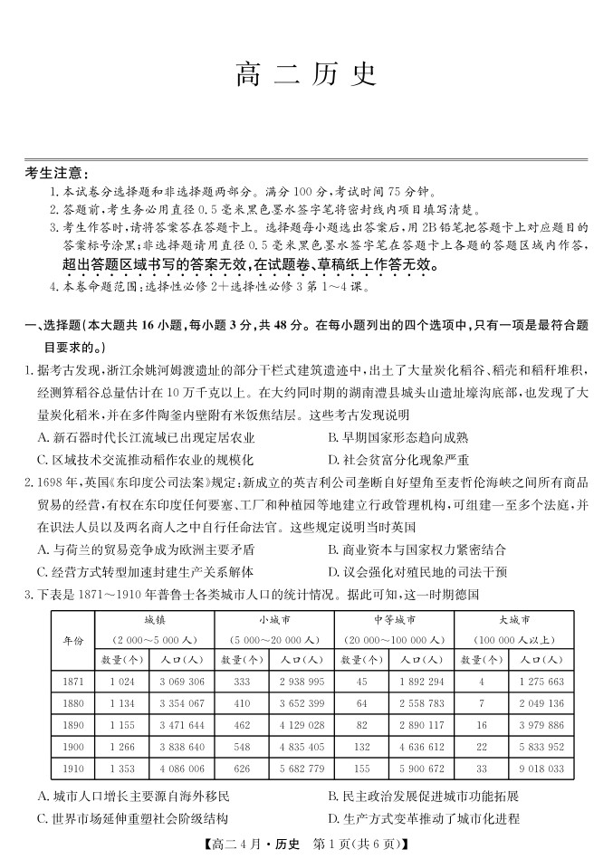 高二历史--安徽省县中联盟2025-2026学年高二年级下学期4月联考