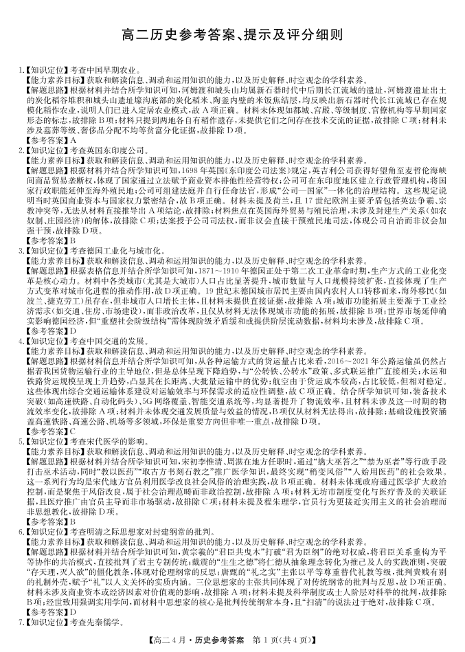 高二历史答案--安徽省县中联盟2025-2026学年高二年级下学期4月联考