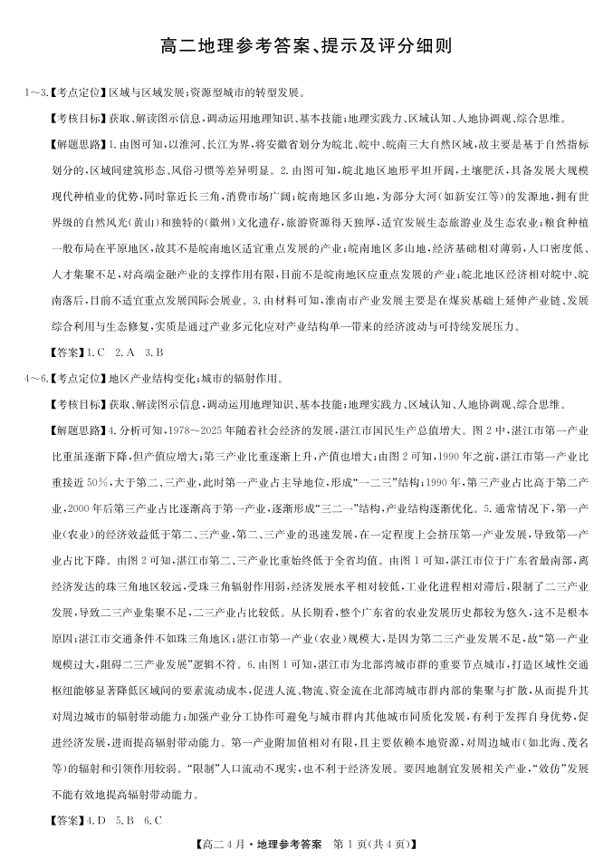 高二地理答案--安徽省县中联盟2025-2026学年高二年级下学期4月联考