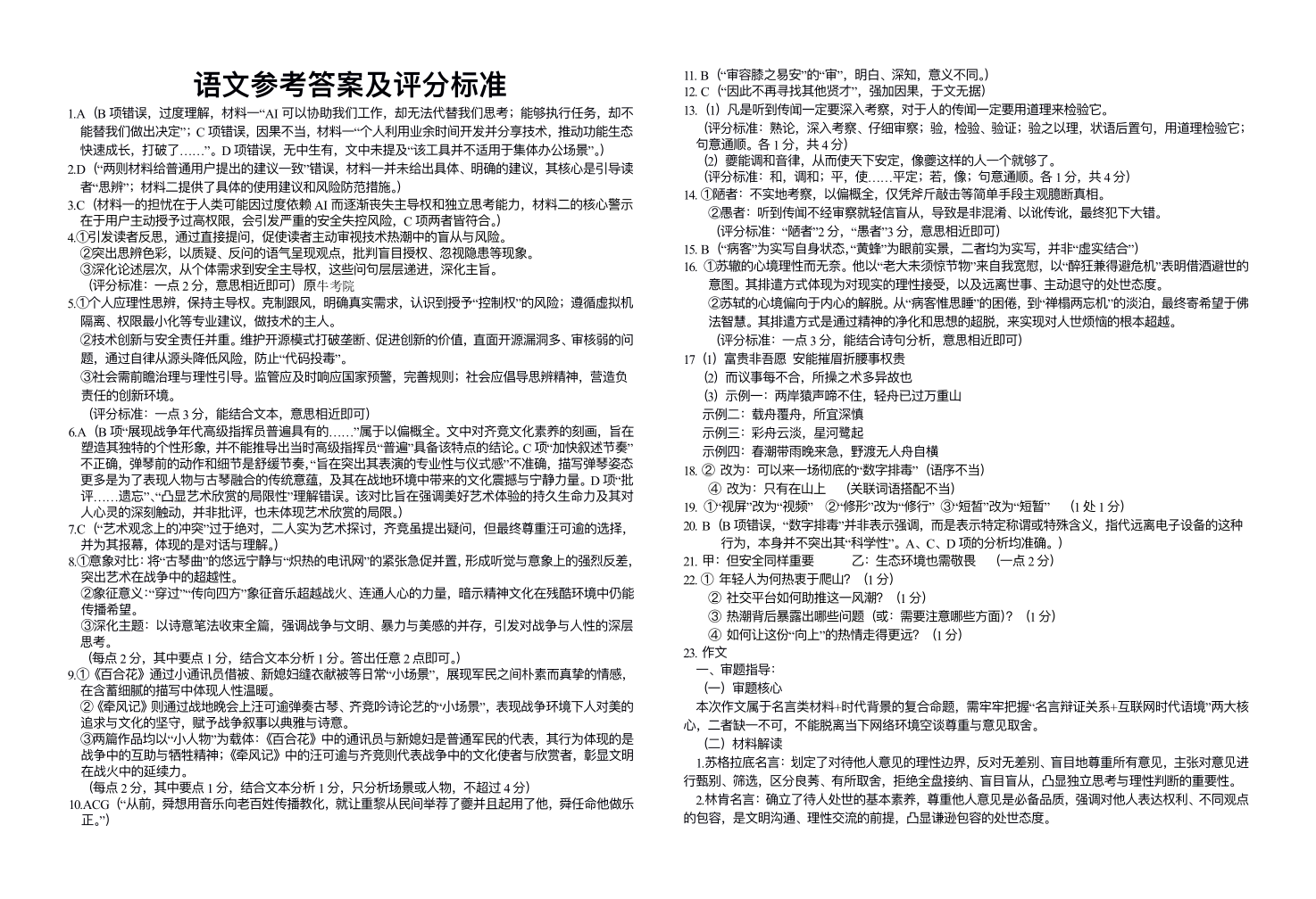 高二语文答案--浙江衢州五校联考2025-2026学年高二下学期期中考