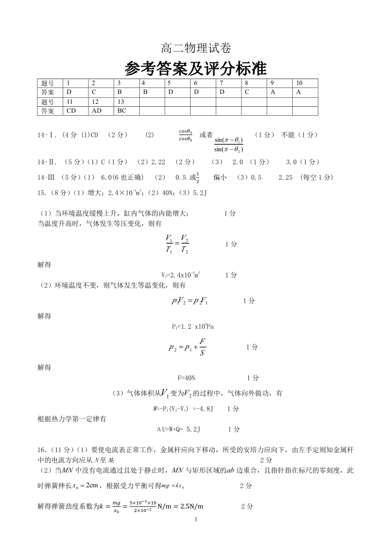 高二物理答案--浙江衢州五校联考2025-2026学年高二下学期期中考