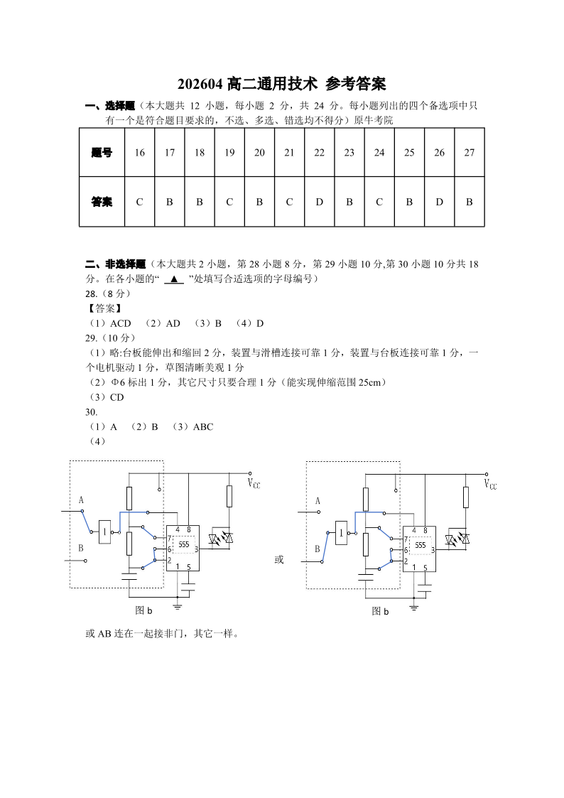 高二通用答案--浙江衢州五校联考2025-2026学年高二下学期期中考