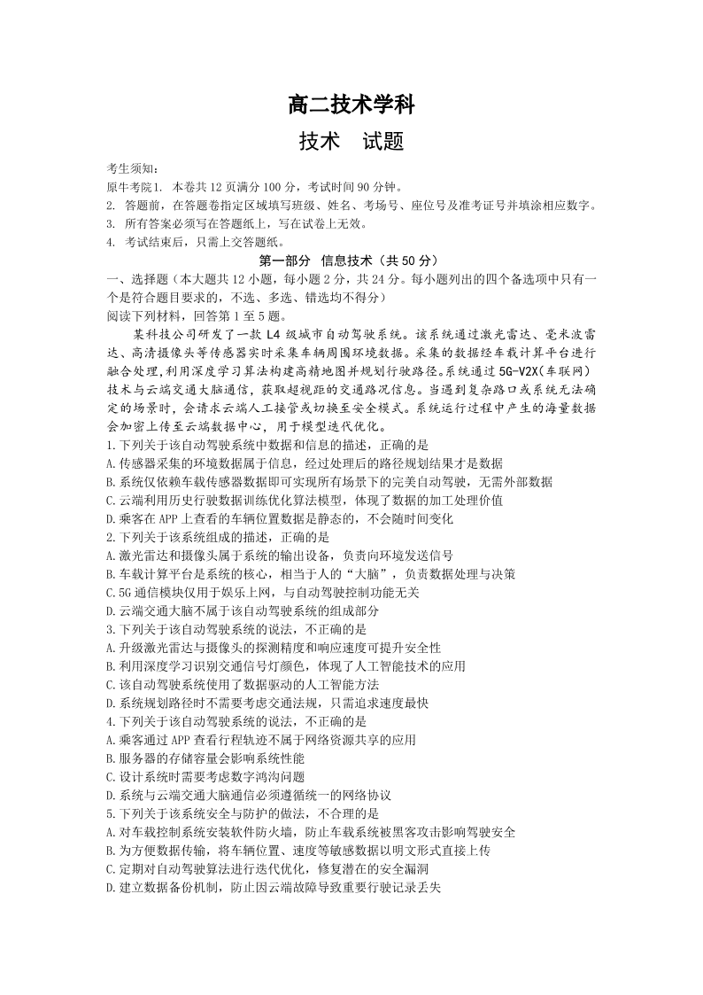 高二信息--浙江衢州五校联考2025-2026学年高二下学期期中考