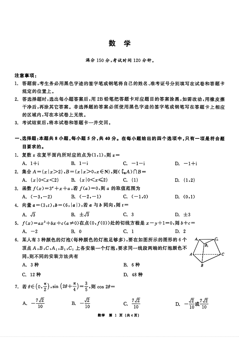 高三数学+答案--黑龙江省齐齐哈尔市2026届高三第二次联考(齐齐哈尔二模)
