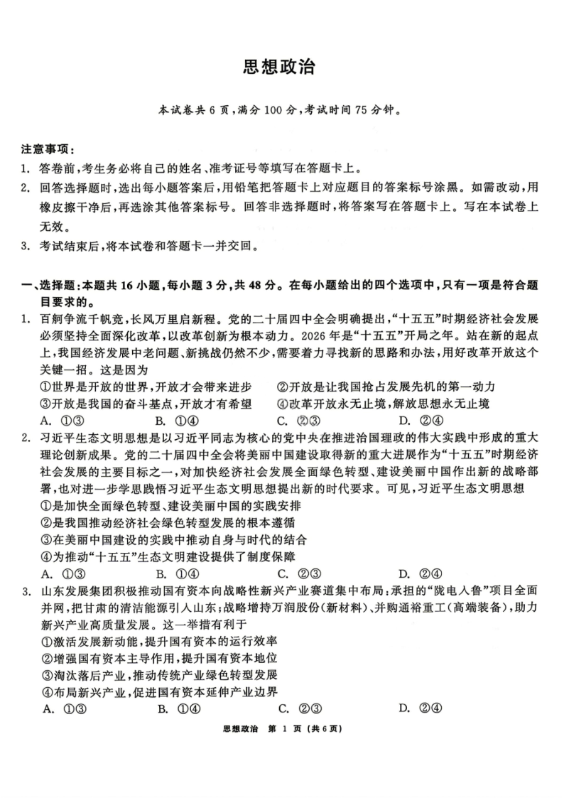 高三政治--黑龙江省齐齐哈尔市2026届高三第二次联考(齐齐哈尔二模)