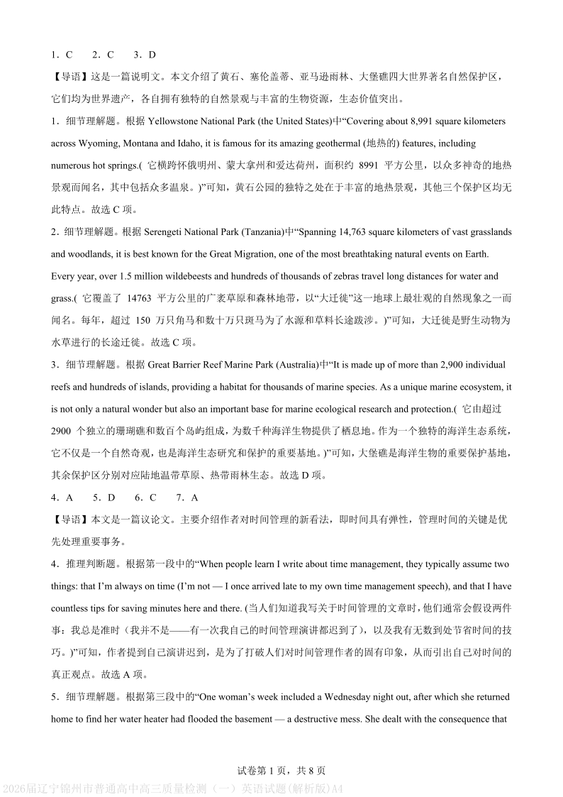 高三英语答案--辽宁省锦州市2026届高三下学期质量检测(一)