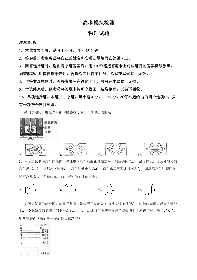 高三物理--陕西省咸阳市2026届高三下学期模拟检测(三)(咸阳三模)