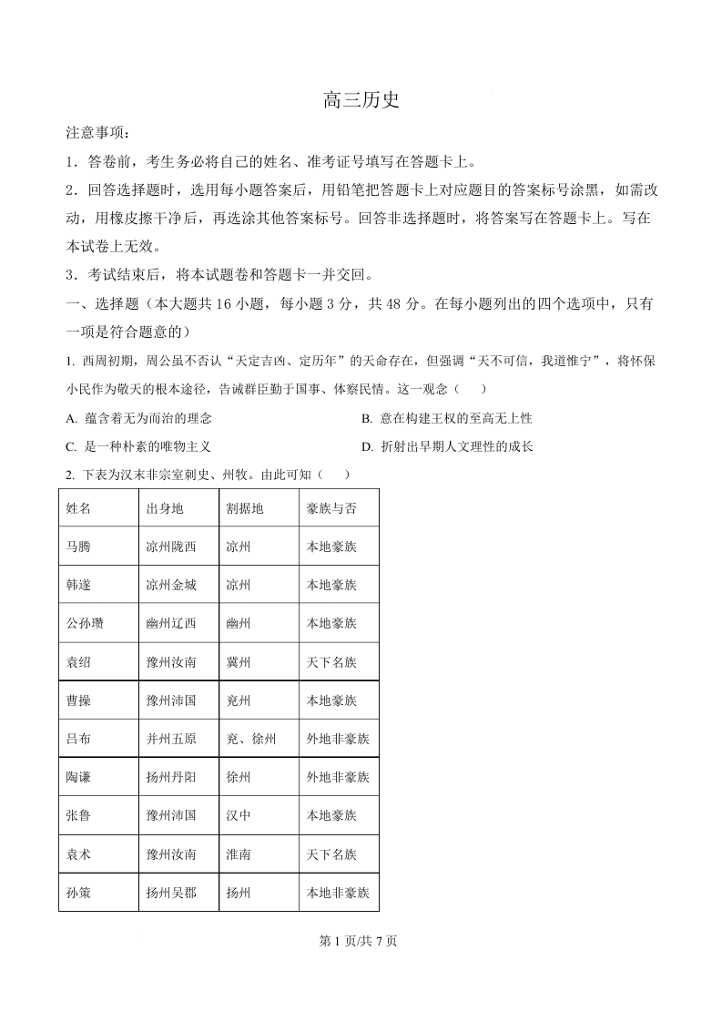 高三历史(原卷版)--湖南省衡阳市2026届高三下学期第二次联考(衡阳二模)