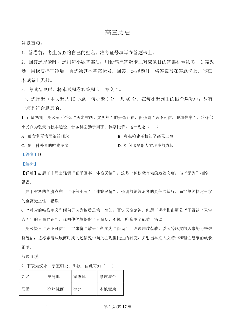 高三历史(解析版)--湖南省衡阳市2026届高三下学期第二次联考(衡阳二模)